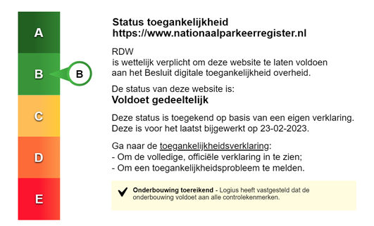 Bij de toegankelijkheidsverklaring hoort een score die vertelt hoe wij voldoen aan toegankelijkheid. Hieronder vindt u onze score: